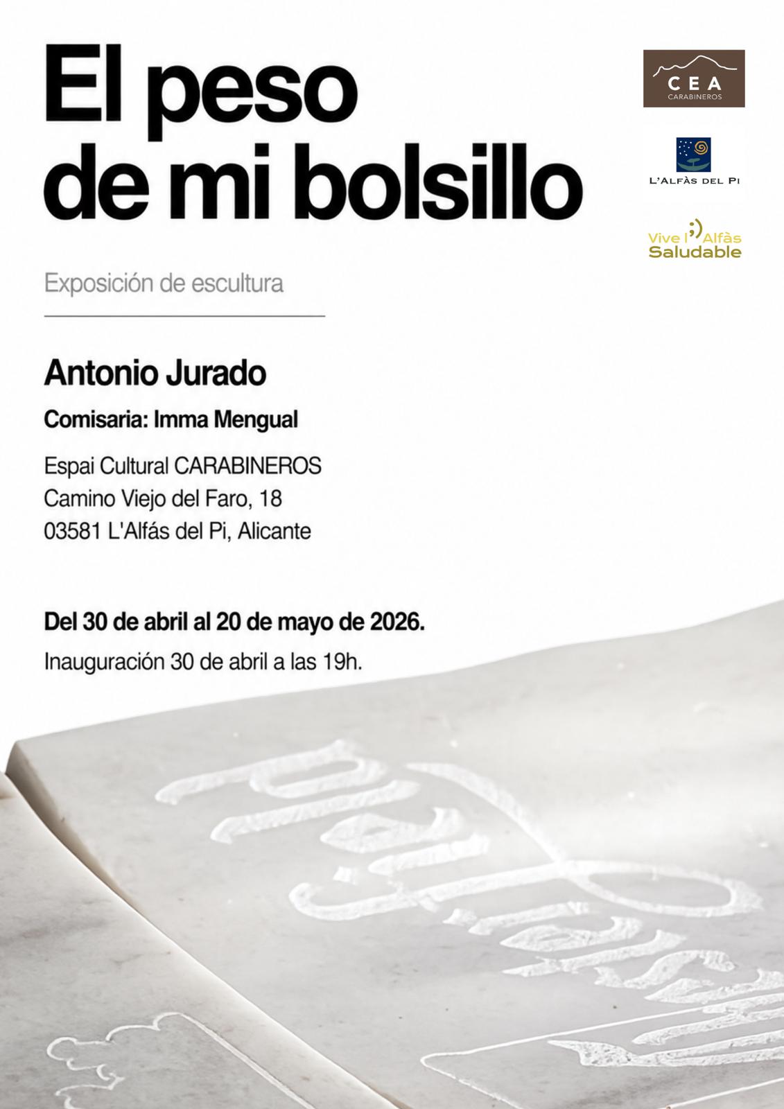 It is a pleasure to curate the exhibition The Weight of My Pocket by the sculptor and researcher Antonio Jurado, which is being presented at the Espai Cultural CARABINEROS.